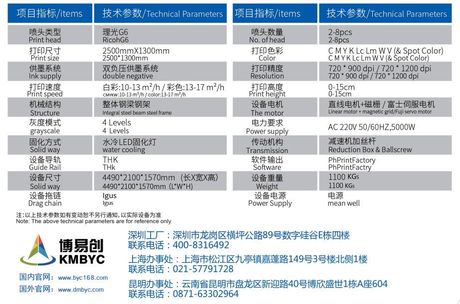產品介紹:博易創BYC168-2513 G6理光噴頭大型uv平板打印機